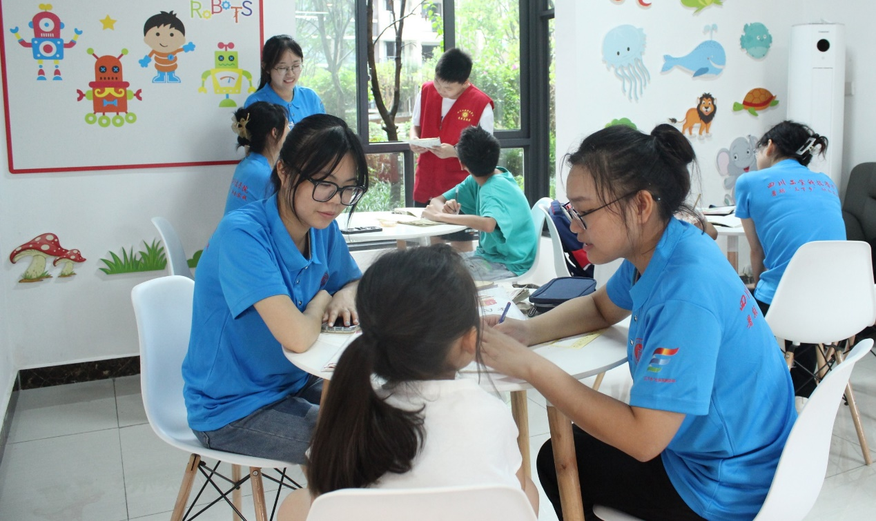 7月27日,“青禾如一·留梦芙蓉溪”实践队开展爱心课业辅导活动。帮助困境小朋友,解决作业无人辅导的难题。志愿者因人而异,有针对性地为孩子们进行课业辅导,耐心解答孩子们的各类疑惑,帮助孩子们更好地掌握学习方法。而后,辅导课业结束,志愿者根据孩子不同的兴趣,向孩子讲解防溺水知识、交通安全知识,和孩子们猜谜语,让孩子们学习到书本以外的知识,拓宽视野与经验。通过“辅导+互助”的模式,在和谐、愉快的情境中实现教与学的共振,使“自主、互助、成长、探究”得到充分展现。