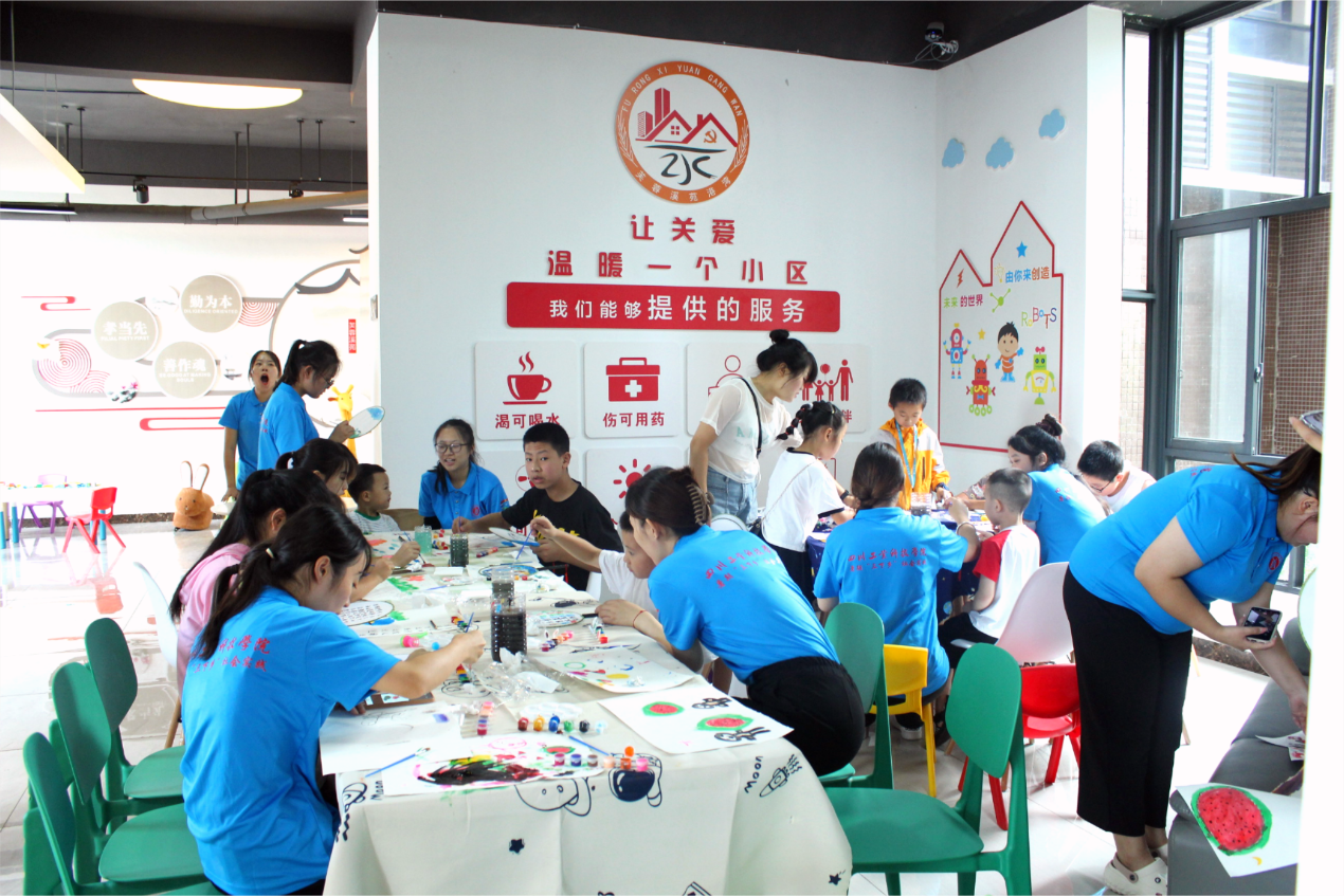 7月28日,志愿者开展“制扇凉夏,绘梦童行”活动,与社区儿童共赴一场天真烂漫文化艺术之约。活动开始,小朋友们在志愿者的带领下,一起讨论,以团扇为载体进行个性创作。绘画环节,在志愿者的陪伴下,孩子们尽情发挥奇思妙想,仔细认真绘画,颜料在扇面游走,一个个色彩斑斓、童真拙朴又不失艺术灵韵的团扇作品便已成型。此次活动,锻炼小朋友们动手动脑及创新能力。让小朋友们在动手实践中感受绘画的乐趣,也收获藏于心欢于颜的欣喜。