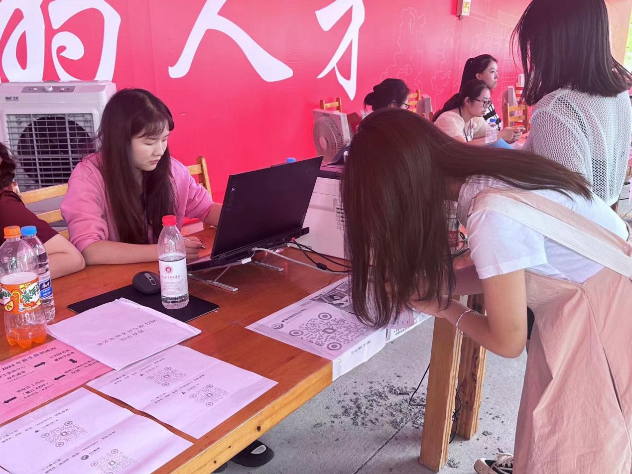 早上七点整,迎新志愿者便早早地来到了校门口,在老师的指导下开始布置注册会场并整装待发,各就各位,等待来报道的23级新生。迎新工作如火如荼,到处都是忙碌的身影。有学姐学长帮忙指引报道的流程,也有学长学姐帮忙抬行李,这些都表达了学长学姐对23级新生的欢迎。