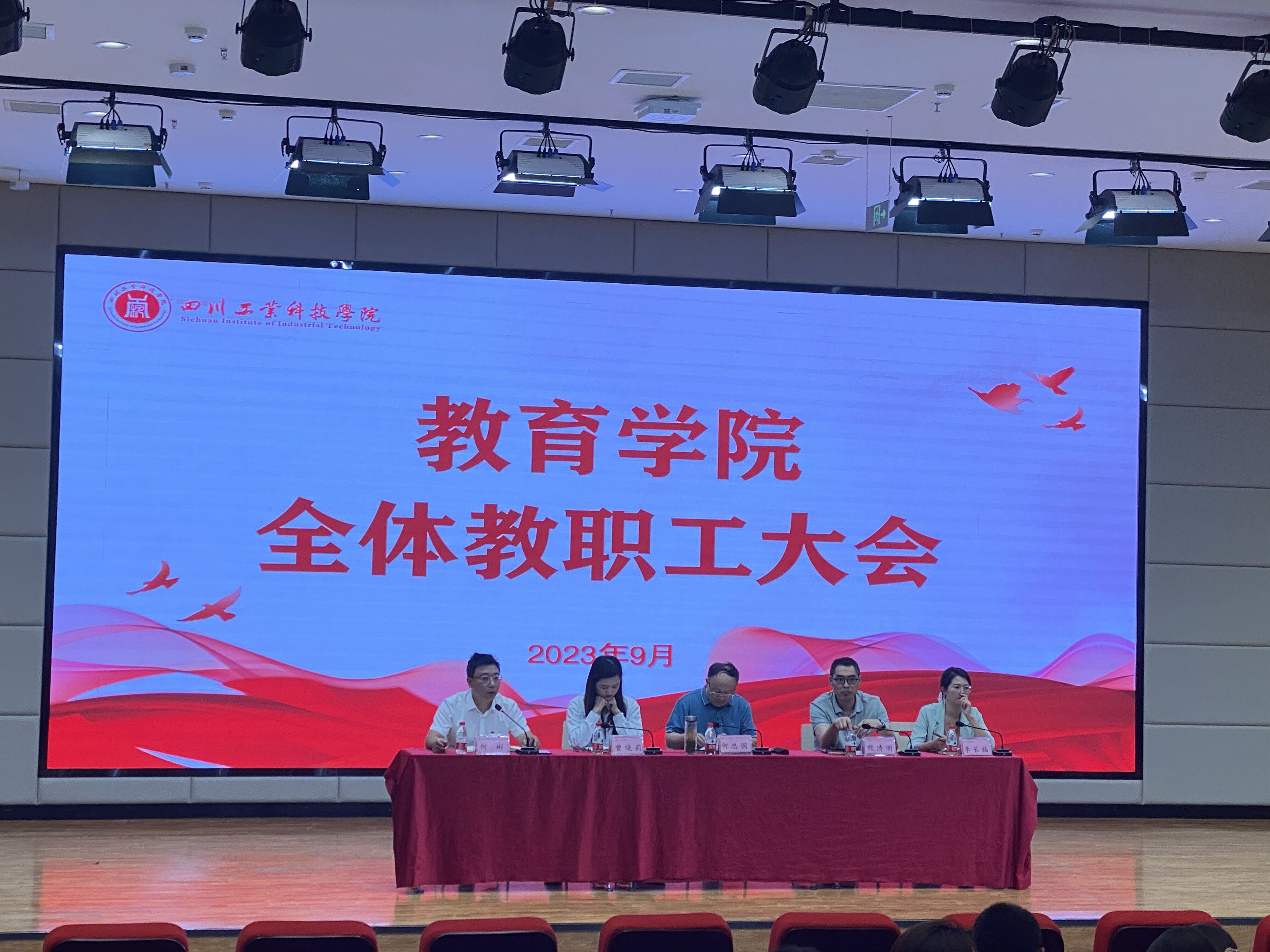 9月14日下午,教育学院于龑江学村C区报告厅召开全体教职工大会。会议由教育学院党总支副书记主持,教育学院党总支书记、教育学院院长,教育学院副院长、教育学院党总支副书记、教育学院院长助理及全体教职工参加了此次会议。