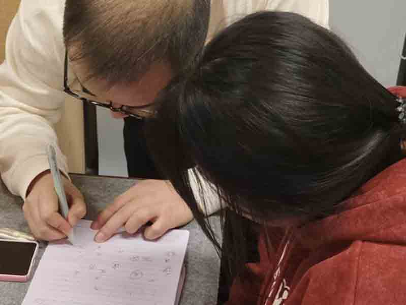 课程开展过程中,熊定永老师通过示范和讲解,教授了如何正确握笔、运笔以及书写基本技巧,现场指导大家运笔、布局,“这一撇一捺就像人的双腿一样,要一样长才能站得稳……”。在老师的指导下,一幅幅规整的作品便映入眼帘。一笔一划认真书写,一言一行显现担当。