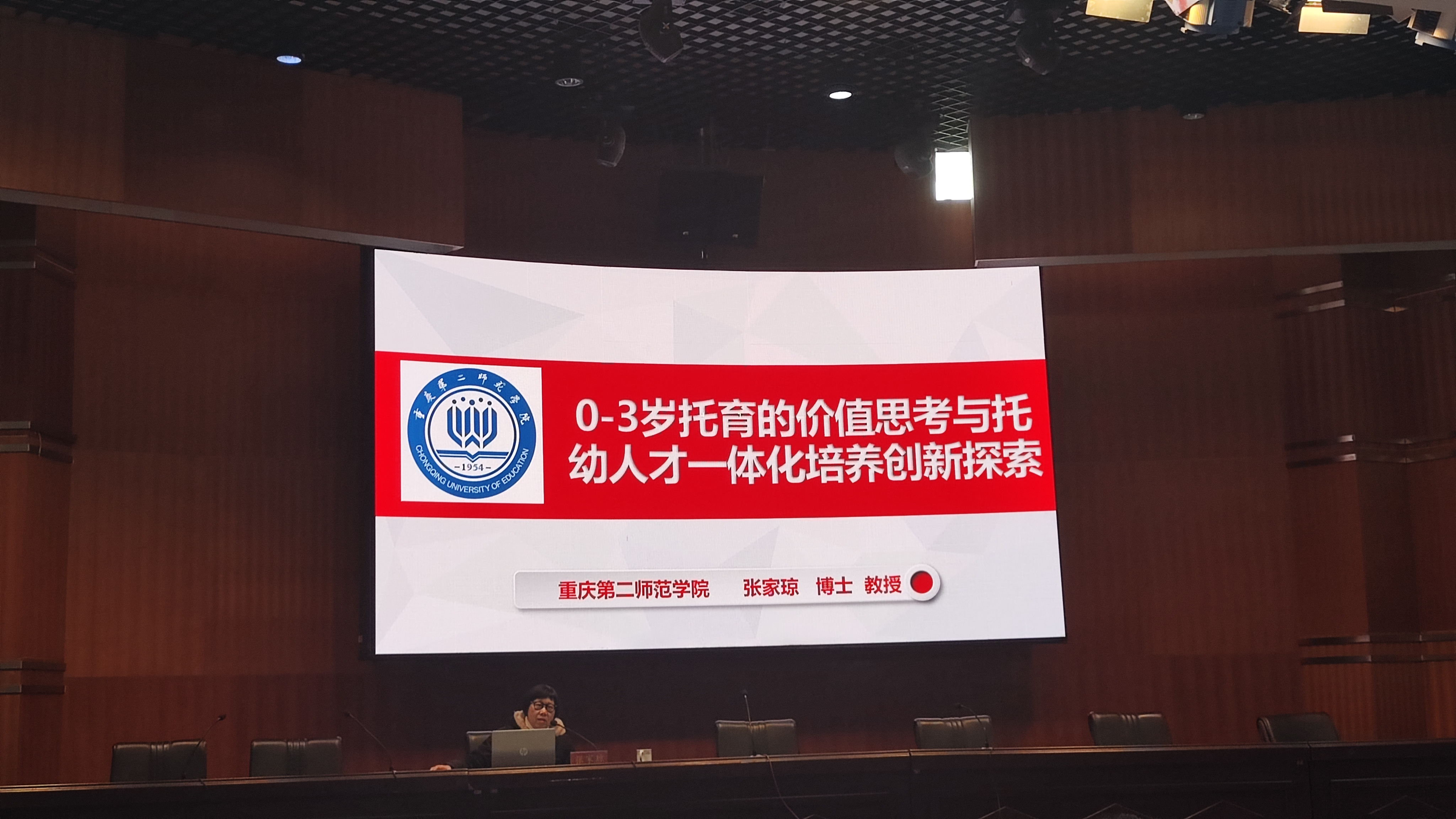 随后,重庆第二师范学院学前教育学院院长张家琼教授对“0-3岁托育的价值思考与托幼人才一体化培养”进行了创新探索,就本科院校如何介入“0-3岁婴幼儿发展”的人才培养、专业发展展开思考,她提到政策的演变、人口结构的骤变、幼儿园的“倒闭潮”等助推着托育的高质量发展。对此,高等院校的专业设置、人才培养的方向应根据社会的变化、家庭结构的变化、幼儿父母层次变化等做挑战性的调整。最后,张教授就高校探索阶段,分享了其针对0-3岁婴幼儿教育开创的相关专业,包括专业的名称、专业的目标、专业课程的内容等。