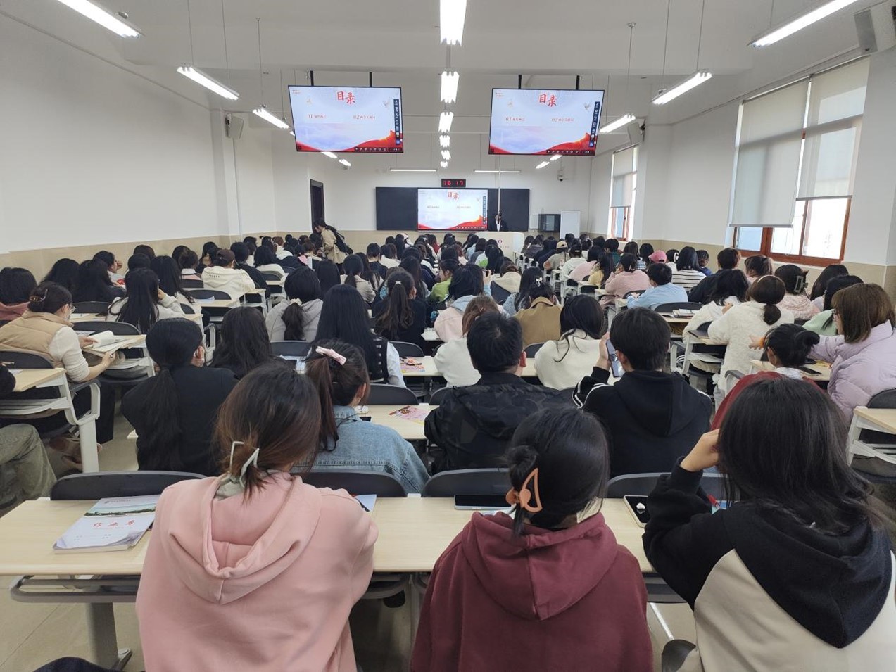 其次,通过从“中国态度、中国温度、中国力度”三个维度解读中国信心,全面列举中国高质量多层次的发展,激励大家坚定理想信念,找准前进方向,不断提高自身综合素质和理论水平,进而为未来的学习和工作打下坚实的基础。此后学生党员郭雅琪和周倩分别分享了自己的心得体会,他们提到要将时代使命融入到个人学习发展之中,紧跟时代热点,完善自我能力,全面贯彻落实两会精神,让青春在火热实践中绽放绚丽之花。