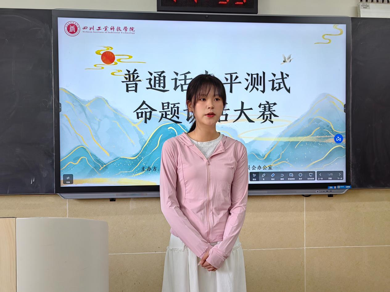 4月25日,由四川工业科技学院语委办主办、大学生语言文字推广中心承办的普通话水平测试命题说话大赛圆满落幕。本次大赛旨在提高大学生的普通话水平,推广规范语言文字的使用,同时为学生提供展示自我才华的平台。