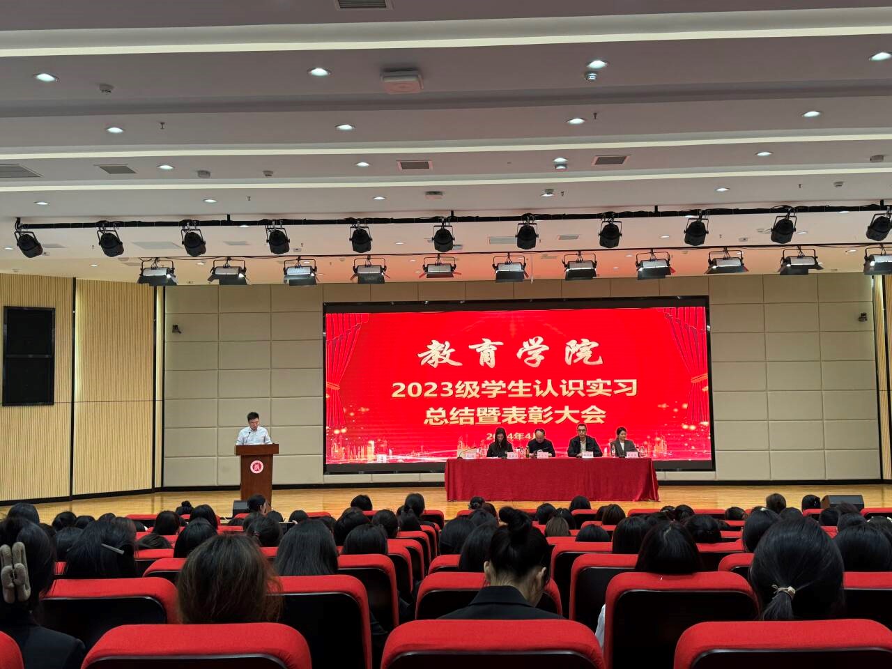 4月23日下午,教育学院2023级学生认识实习总结暨表彰大会在龑江学村C区报告厅顺利召开,大会由教育学院党总支副书记主持,教育学院党总支书记、院长,教育学院副院长,教育学院党总支副书记,教育学院院长助理及全体科级以上干部、实习带队老师和2023级学生代表参加了此次会议。