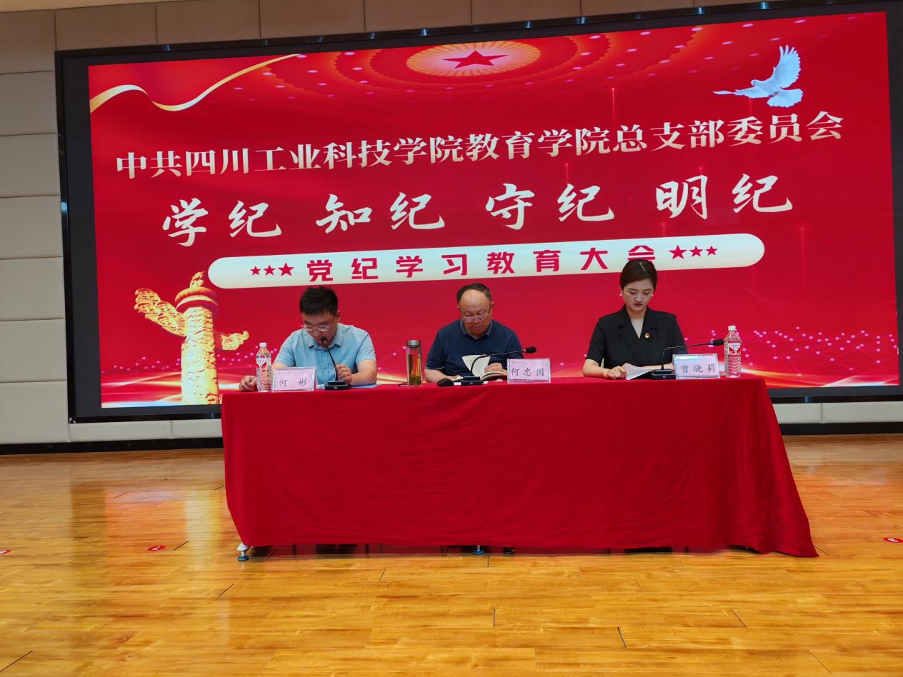 5月23日下午,教育学院在龑江校区C报告厅召开党纪学习教育大会。会议由党总支副书记主持,党总支书记、院长和党总支副书记出席会议,教育学院全体党员教师参加了此次会议。