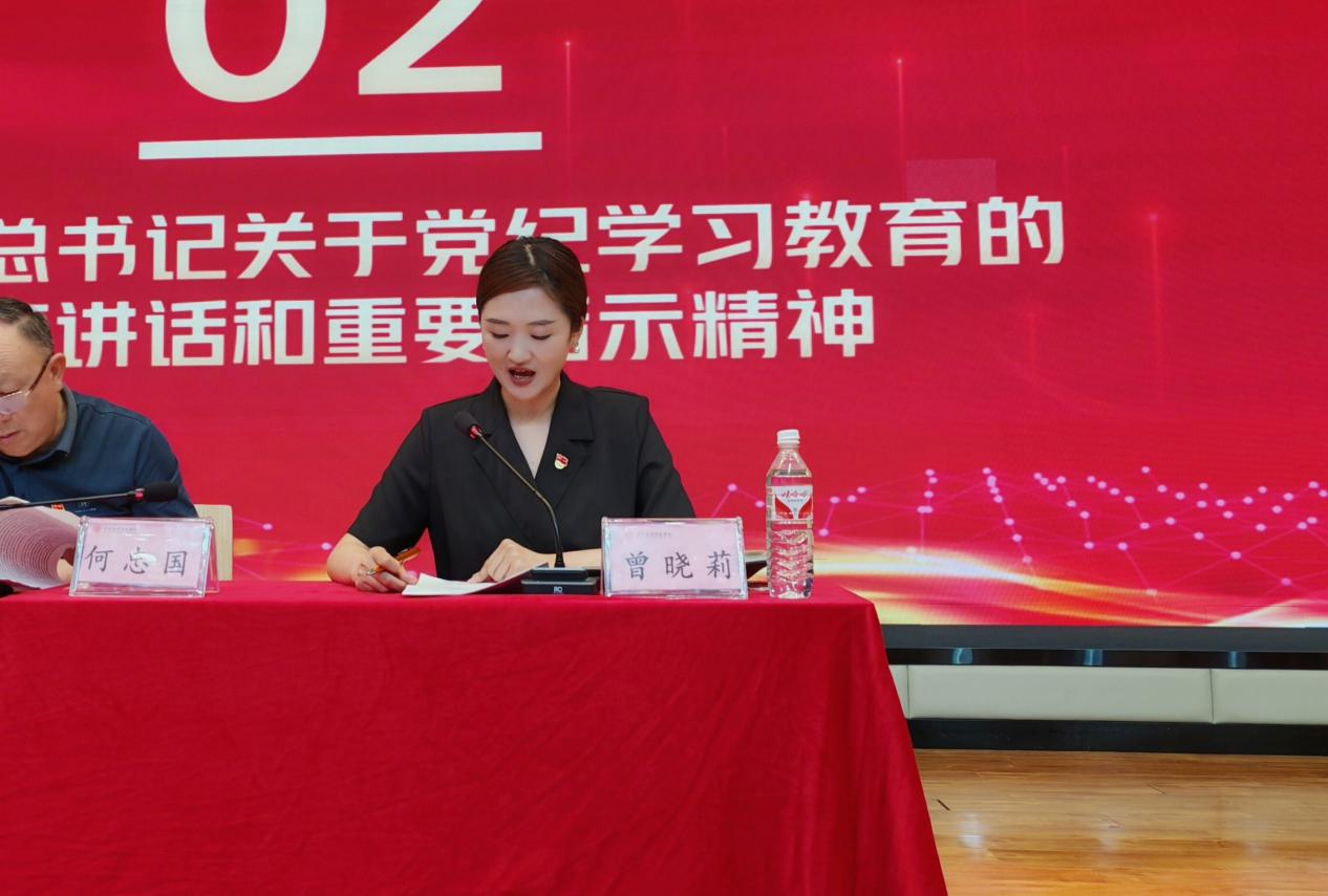 会议第二项,由党总支副书记传达学习习近平总书记关于党纪学习教育的重要讲话和重要指示精神,并强调我们要以高度的政治自觉深入到学习中来,领会、贯彻习近平总书记关于党纪学习教育的重要讲话和重要指示精神,全面落实“六项纪律”要求,筑牢思想防线、严守纪律底线,以良好作风保证党纪学习教育走深走实。