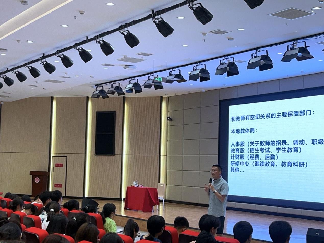 随后,曹校长着重围绕着如何准备做一名优秀教师开展讲解。他强调作为教师必须具有自信,在讲台上能够大方自然的向同学们传授知识;必须拥有一颗仁爱之心,能够真正的关爱学生,理解学生的需求、感受和困难,给予学生温暖和支持;扎实的学识也是教师能够成功做好教学工作的必备素养,作为未来的小学教师,所有小学专业的学生都应在大学学习的过程中锻炼自己的能力,以达到一名小学教师应有的水平。