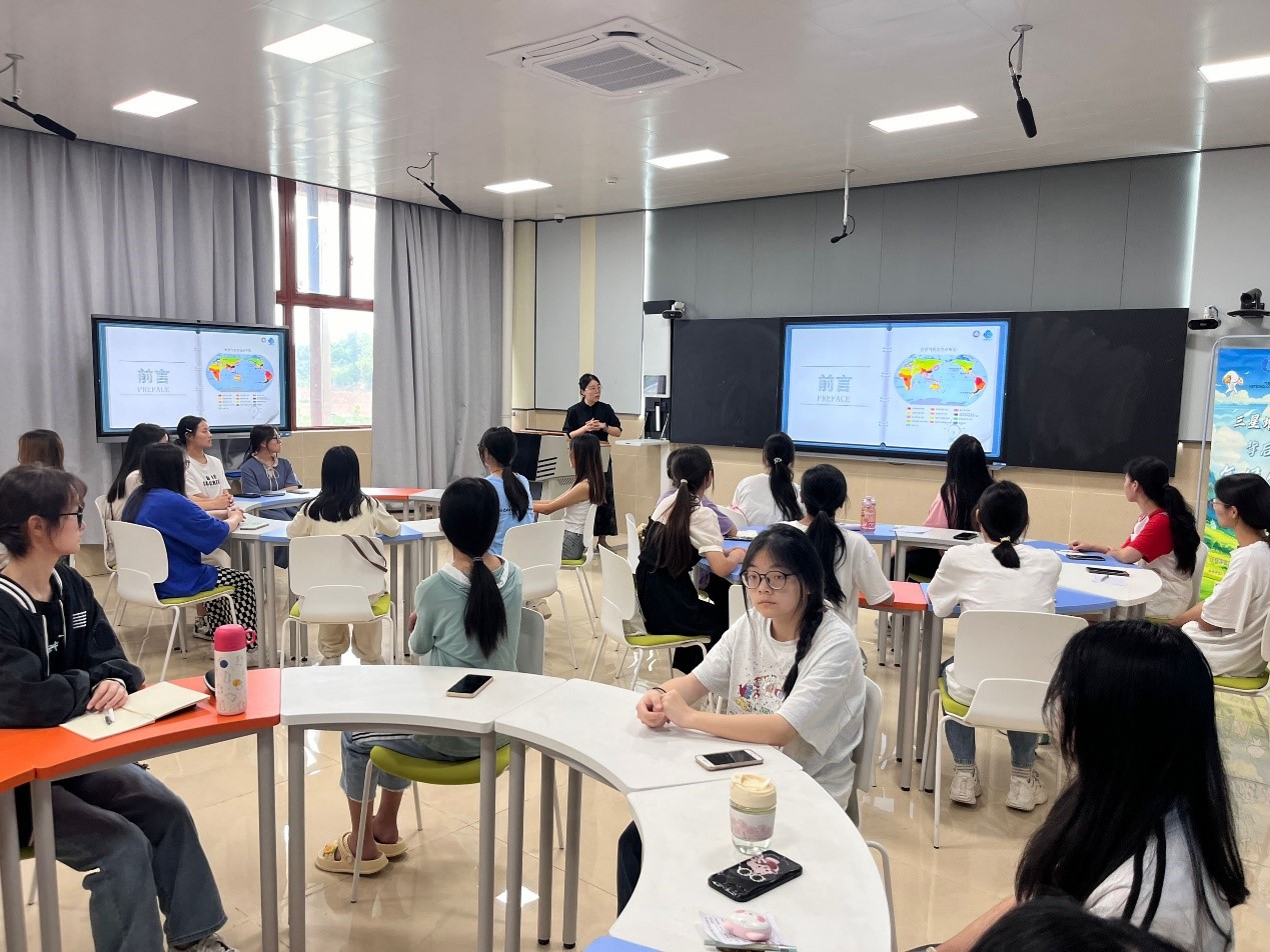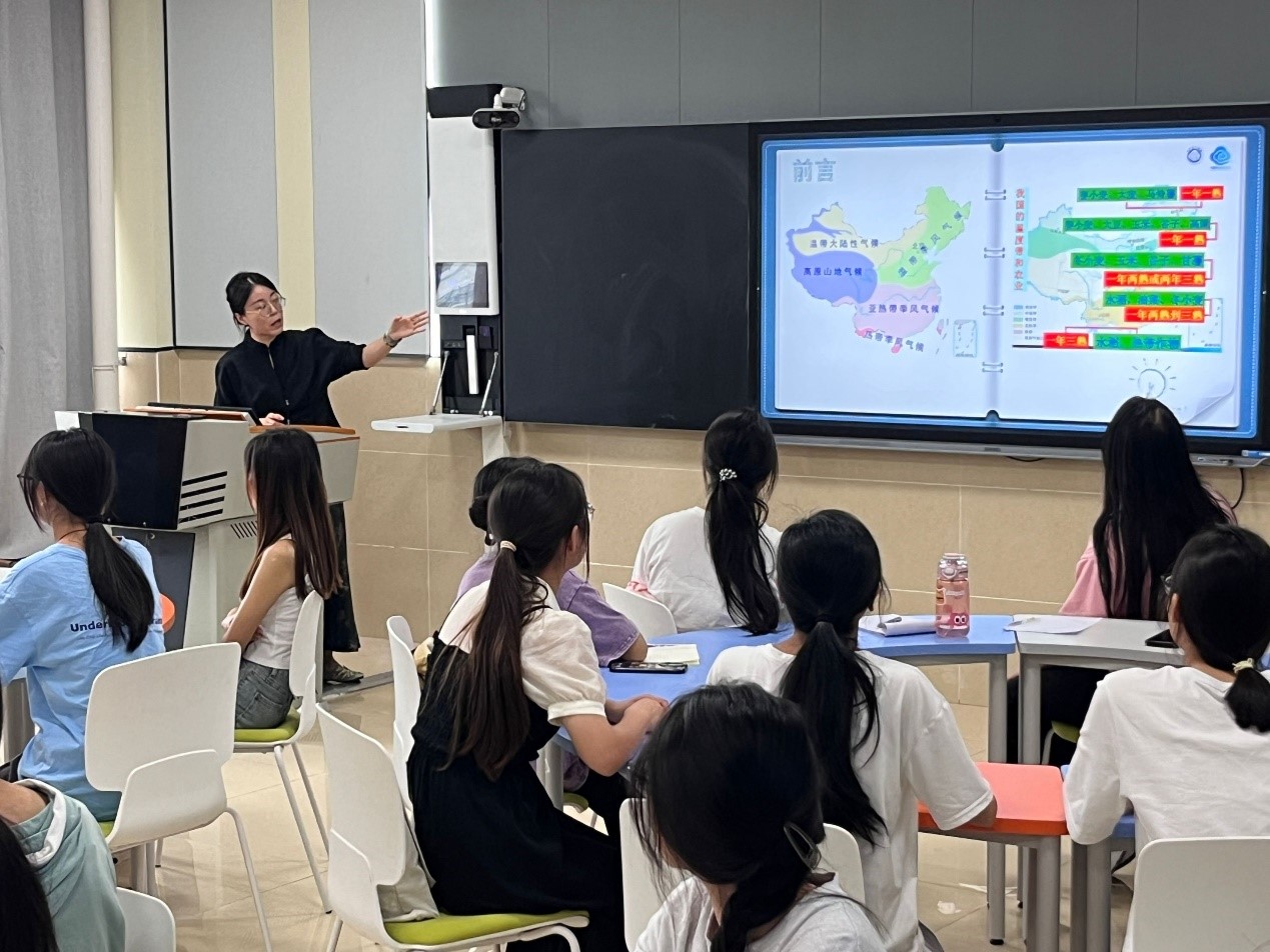 蔡嘉婧专家在讲授之前先播放科普视频,简单介绍了三星堆的地理位置及部分图片,以及世界气候类型和我国气候类型的种类,很快就激发了同学们对三星堆文明背后气象密码的兴趣。