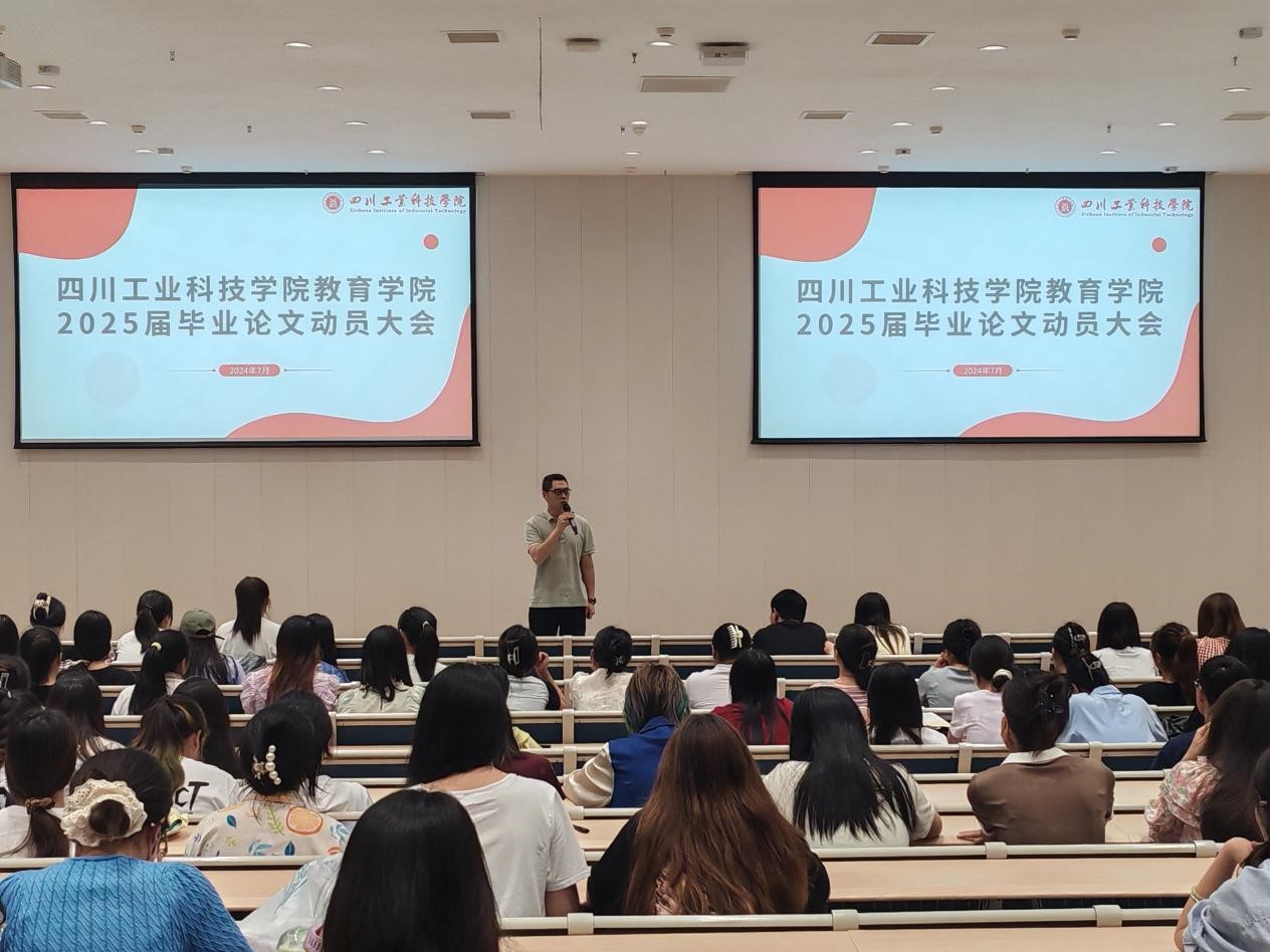 为了进一步提高本科毕业论文质量,规范毕业论文管理。7月24日,教育学院在龑江学村B报告厅召开2025届毕业论文动员大会,2025届全体毕业生参加了此次会议。