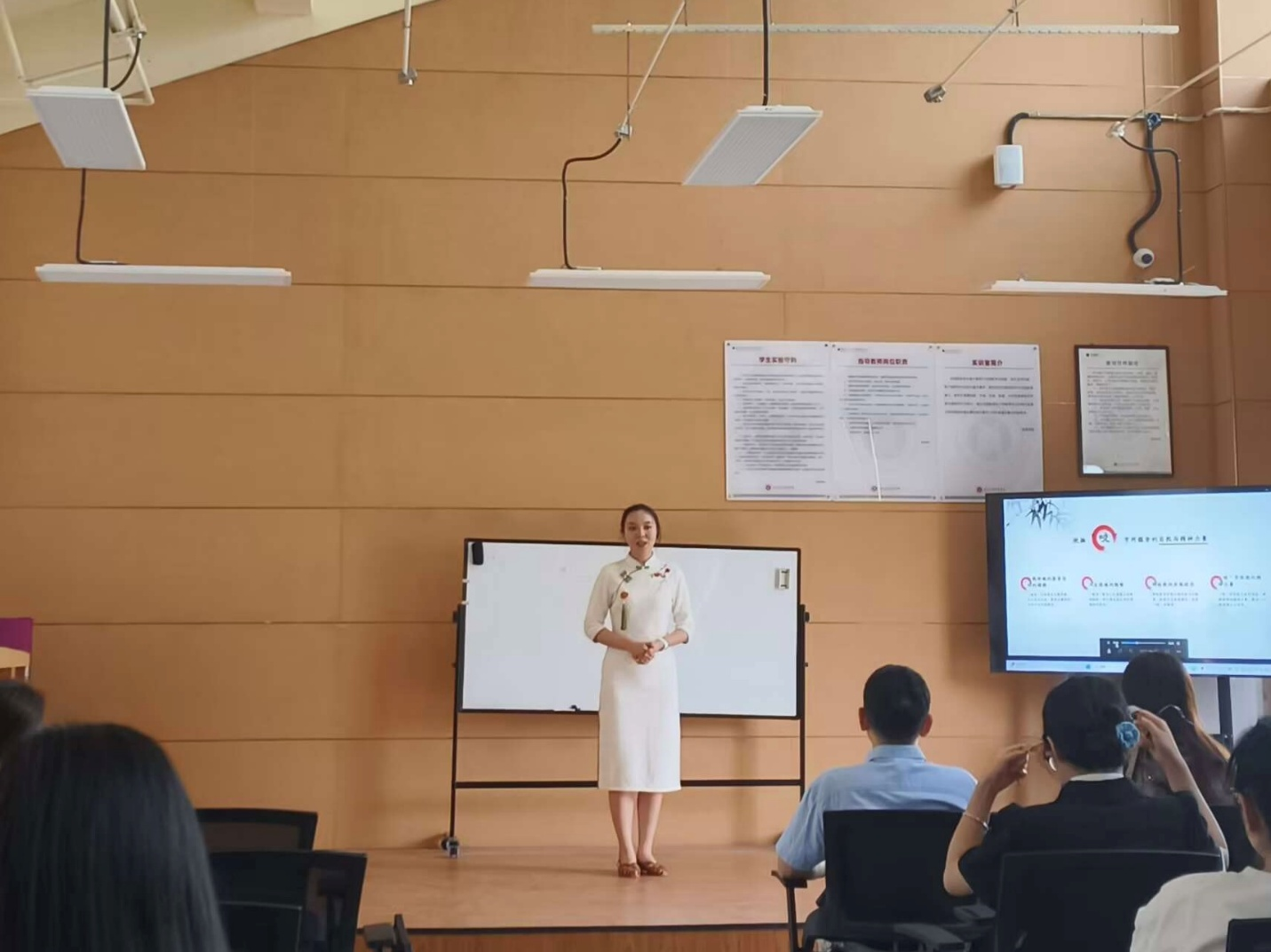 5月15日,由学校主办,校语委办承办的2025年中华经典诵写演讲系列活动“诗教中国”诗词讲解(教师组)比赛在水街合唱实训室举行。比赛邀请张波、代娜、李印平、李娜、刘琴五位汉语言文学专业教师担任评委。