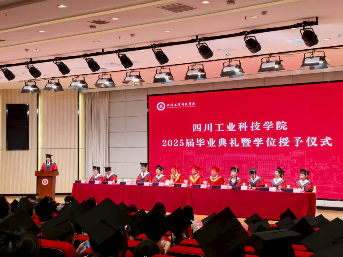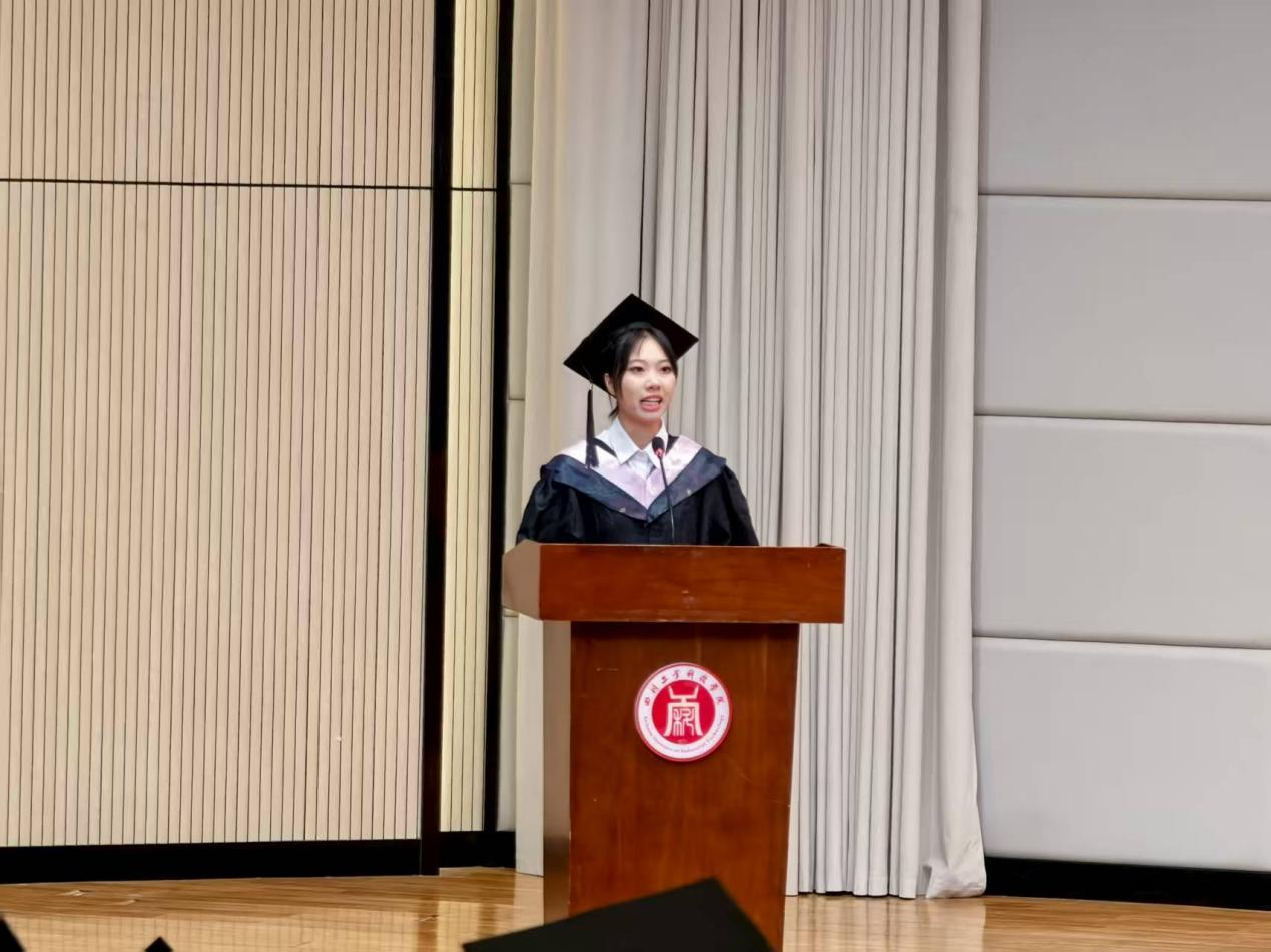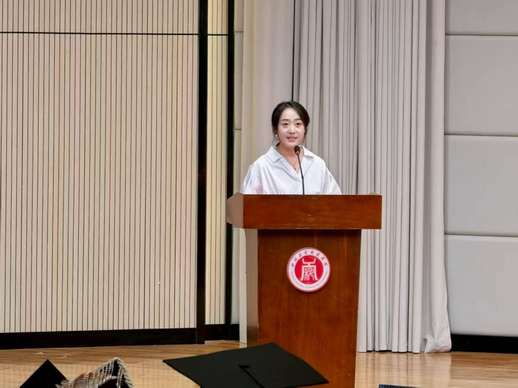 活动第六项,优秀毕业生代表潘洪雨以《根植沃土,心向朝阳——从川工科出发,向未来报到》为题发言。她回顾了大学期间的成长历程,感恩学校提供平台以及师长的倾心教导,分享了自己的奋斗收获。在发言的最后,她祝愿同学们繁花似锦,并向母校与师长送上诚挚祝福。