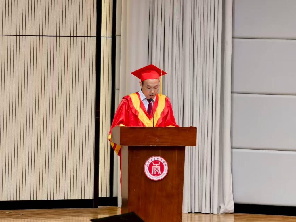 活动第八项,何忠国为2025届毕业生寄语。首先,何忠国向毕业生表示祝贺,向付出心血的师长致敬。他希望学生们可以保持学习热情,在社会“大考”中持续进取;坚守责任担当,于不同岗位奉献力量;以豁达热爱拥抱生活,不惧坎坷。同时,何忠国表示母校是永远的精神家园,希望同学们常回校看看,祝愿同学们奔赴广阔未来,开启人生新篇章。