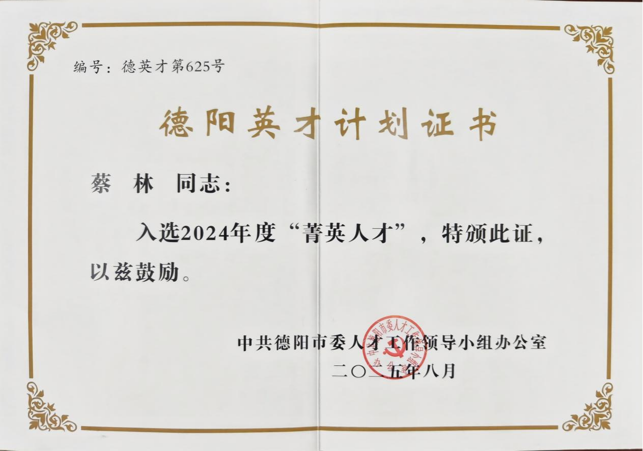 蔡林教授入选德阳市2024年英才计划“菁英人才”