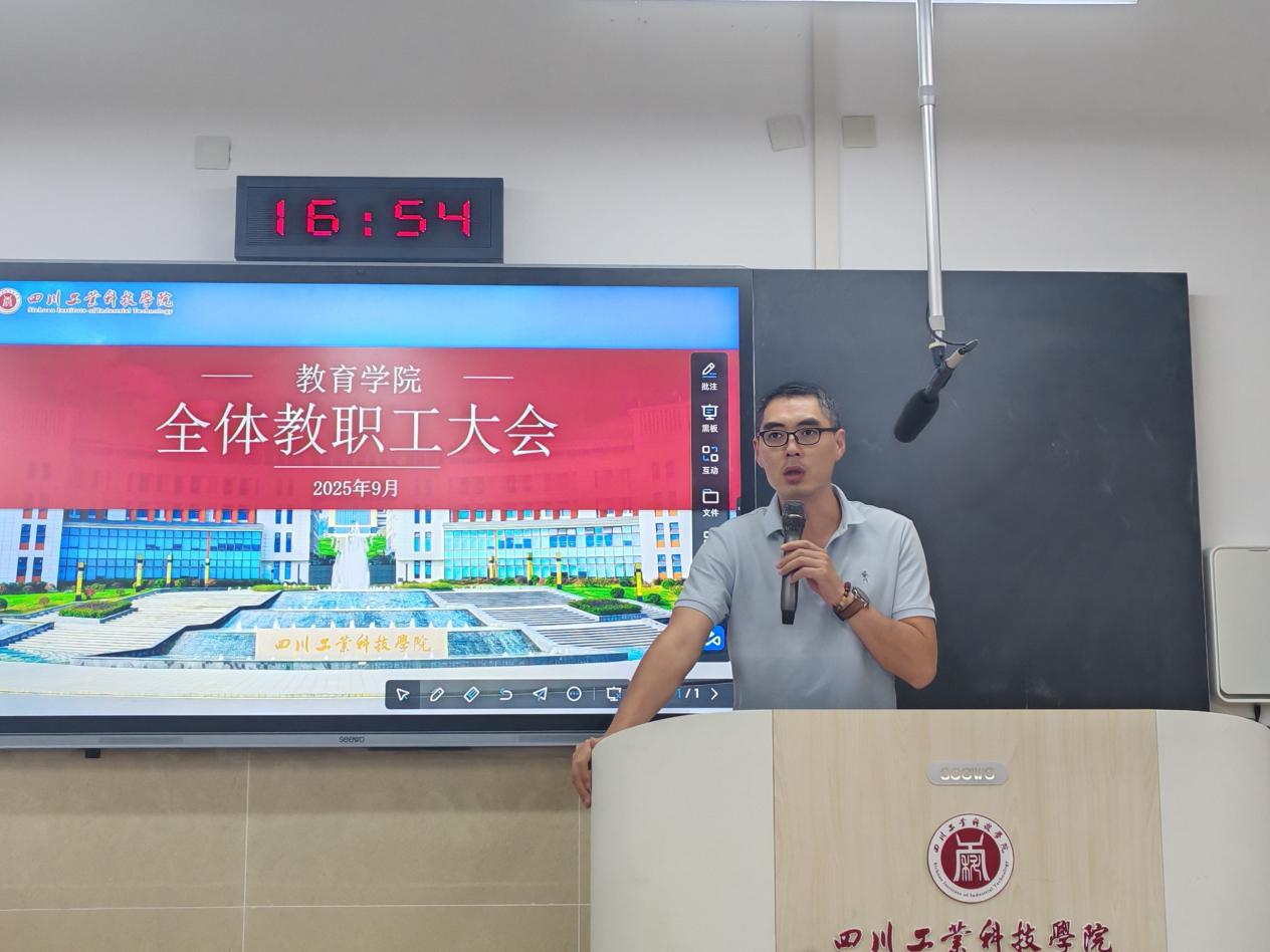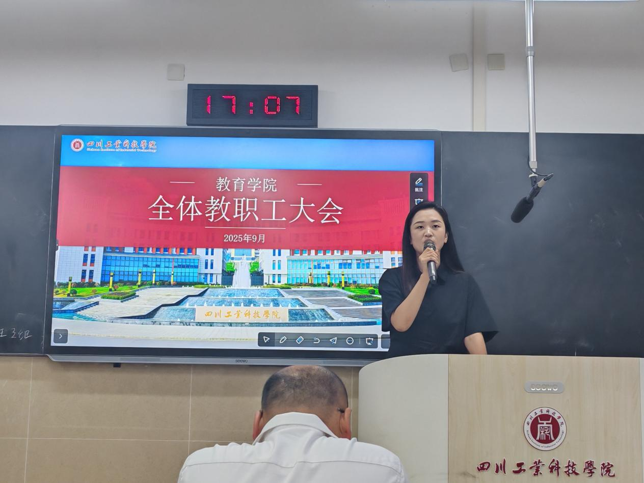 9月4日,教育学院在龑江学区D305教室召开全体教职工大会。会议由学院院长蔡林主持,学院副院长熊清明、学院党总支副书记何彬、学院副院长曾晓莉,学院院长助理李长福及学院全体教职工参加了此次会议。