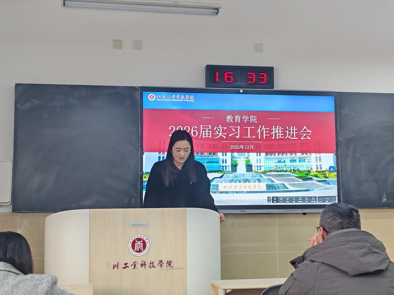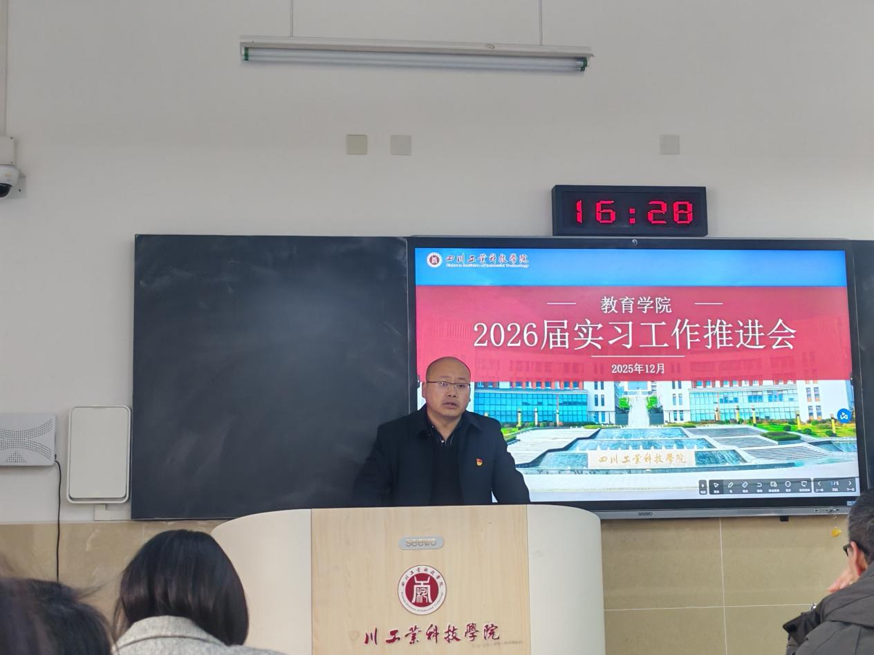 为切实破解2026届毕业生就业难题,规范实习管理流程,全面提升人才培养质量,12月4日,教育学院召开全体教职工大会,同步部署推进就业与实习两项重点工作。会议由院长蔡林主持,全体教职工参会。