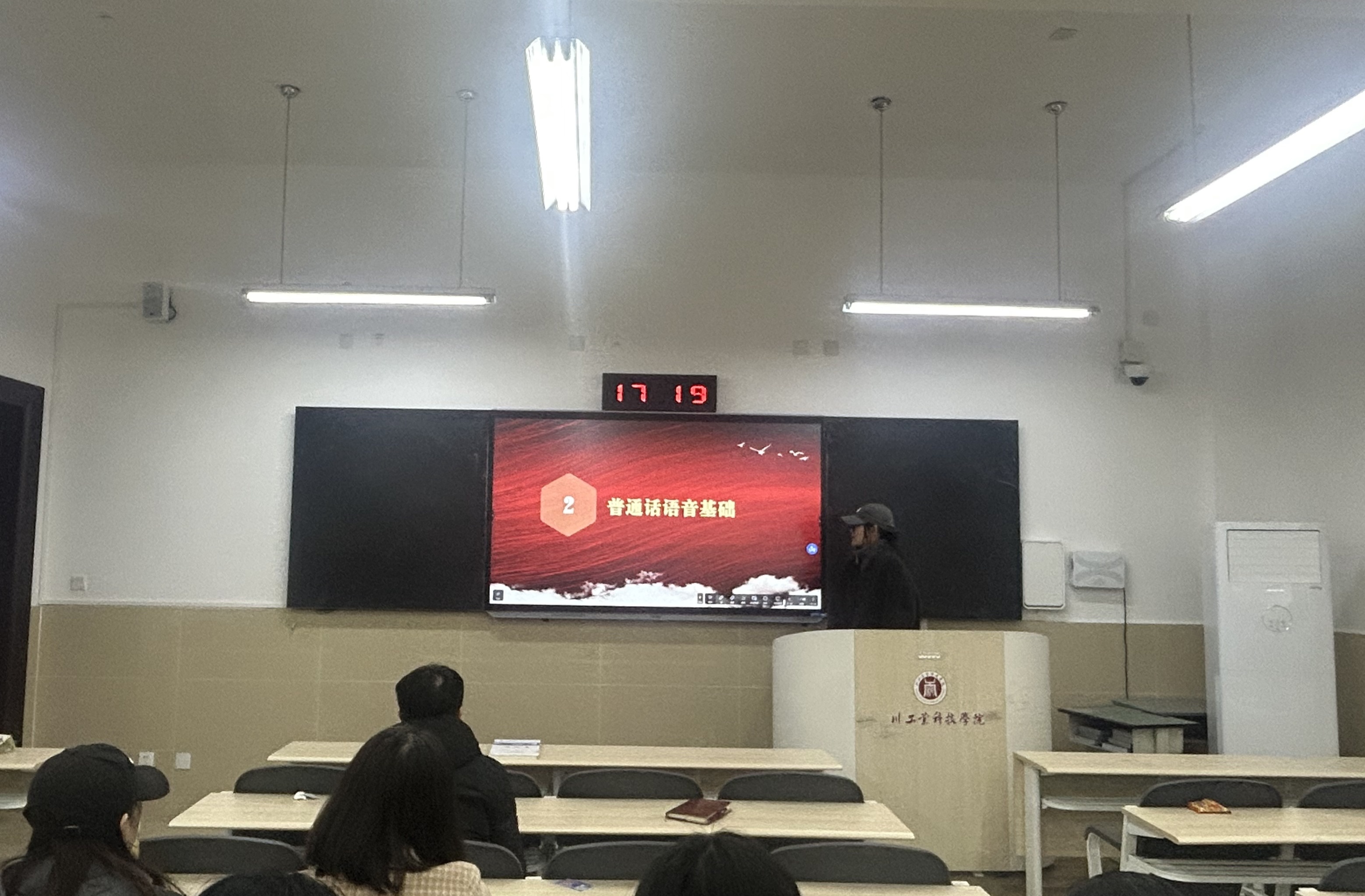 本次会议共分三个环节有序进行。在教师试讲展示环节,语文专业徐伟、代娜、谢述峰三位教师分别进行教学片段试讲,英语专业刘棠欢教师就课程重点内容进行课堂展示。四位教师准备充分、教学设计各具特色,充分展现了扎实的教学基本功。