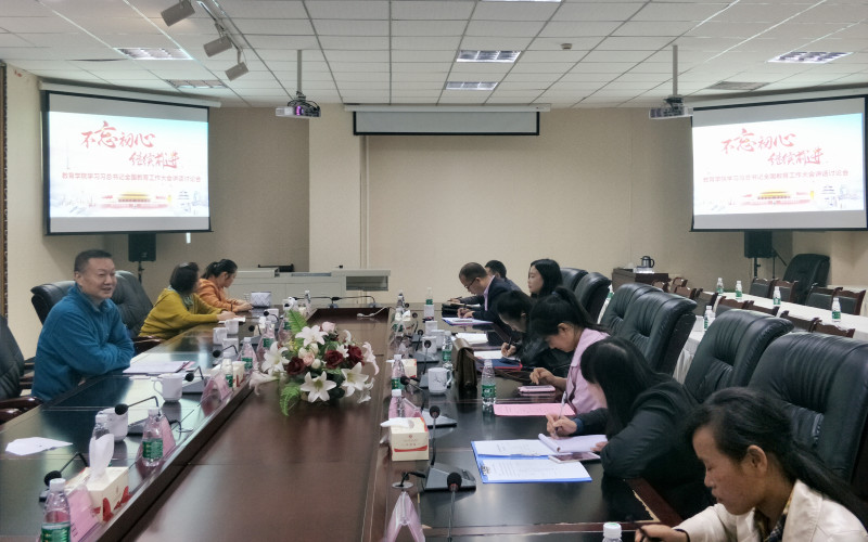 育精益求精工匠,做德技双馨教师。10月18日,教育学院学习习总书记全国教育工作大会讲话讨论会在图书馆401顺利召开。学院副院长吴节义、党支部副书记熊定永及学院全体教师参加会议。