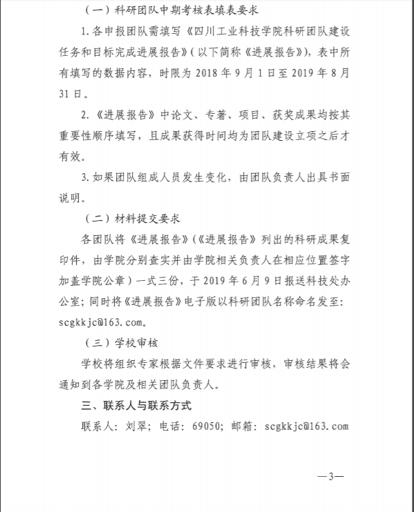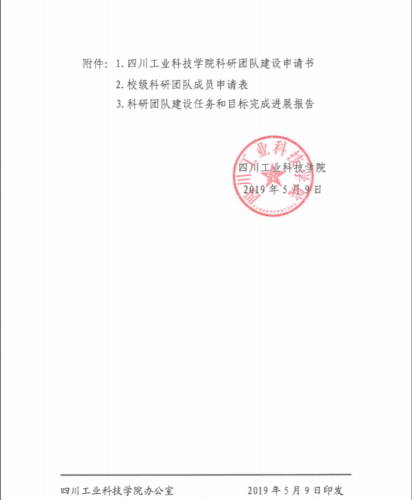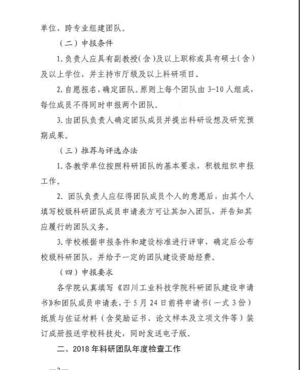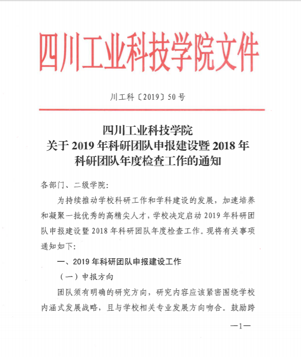 四川工业科技学院关于2019年科研团队申报建设2018年科研团队年度检查工作的通知。