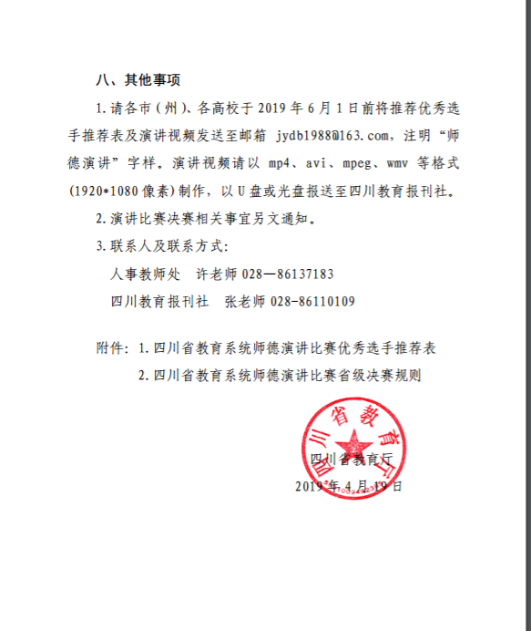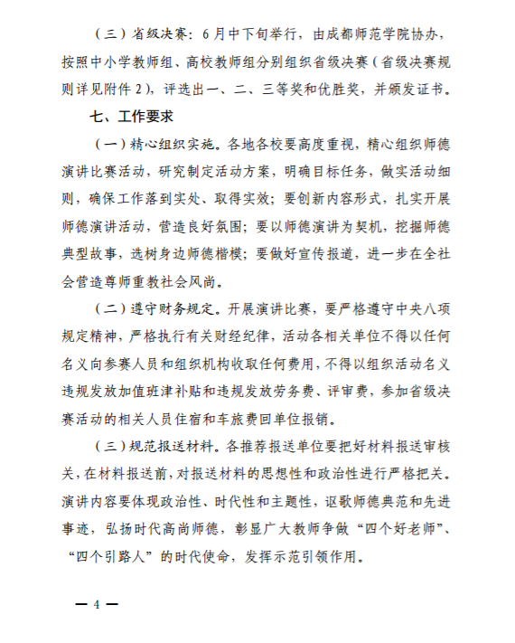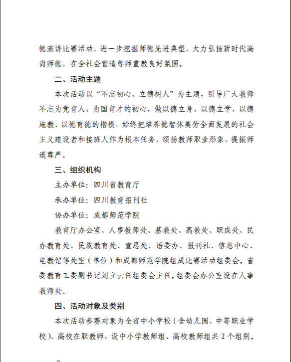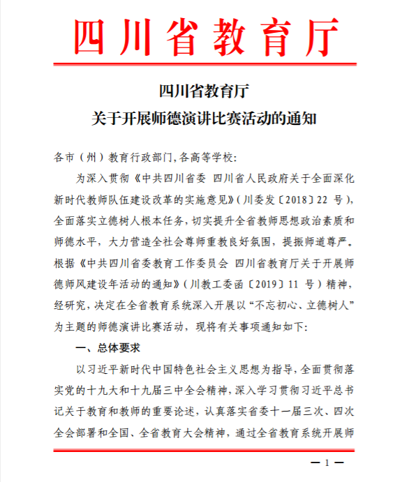 四川省教育厅关于开展师德演讲比赛活动的通知。