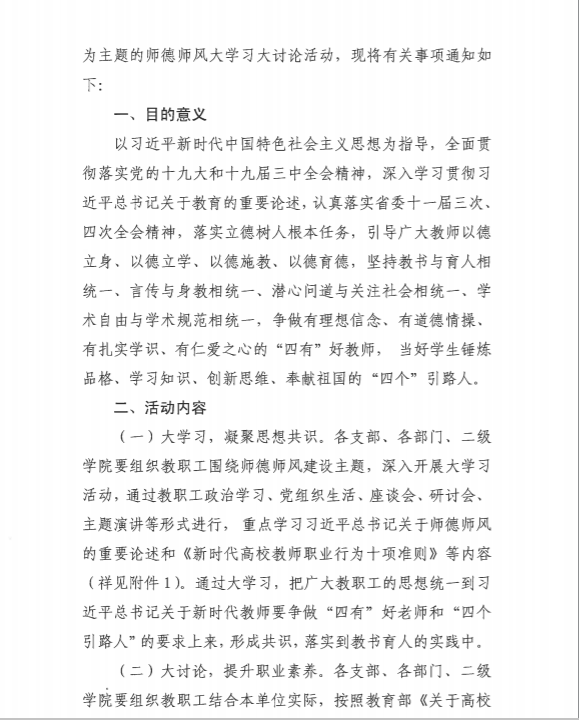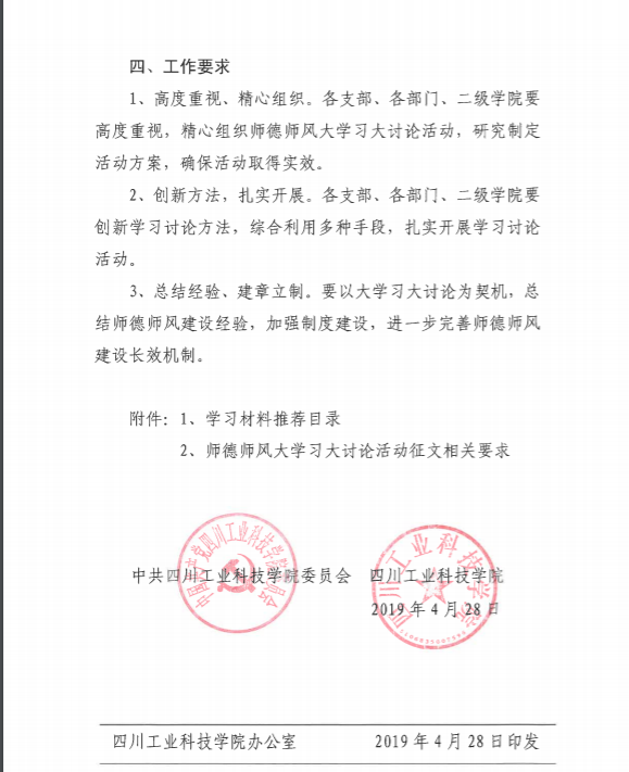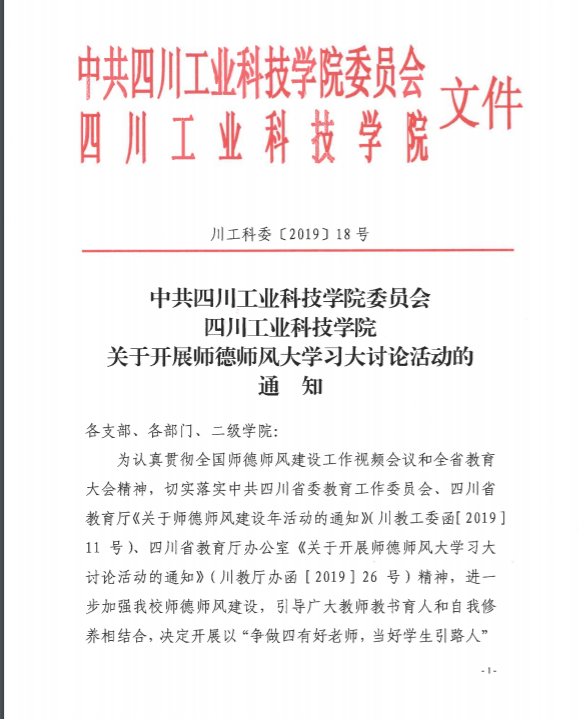 四川工业科技学院关于开展师德师风大学习大讨论活动的通知。