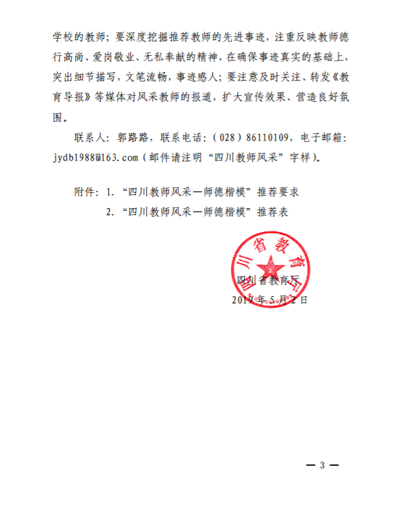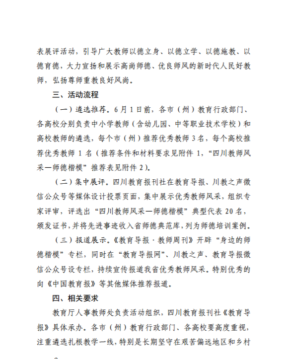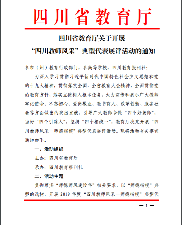 四川省教育厅关于开展"四川教师风采"典型代表展评活动的有通知。