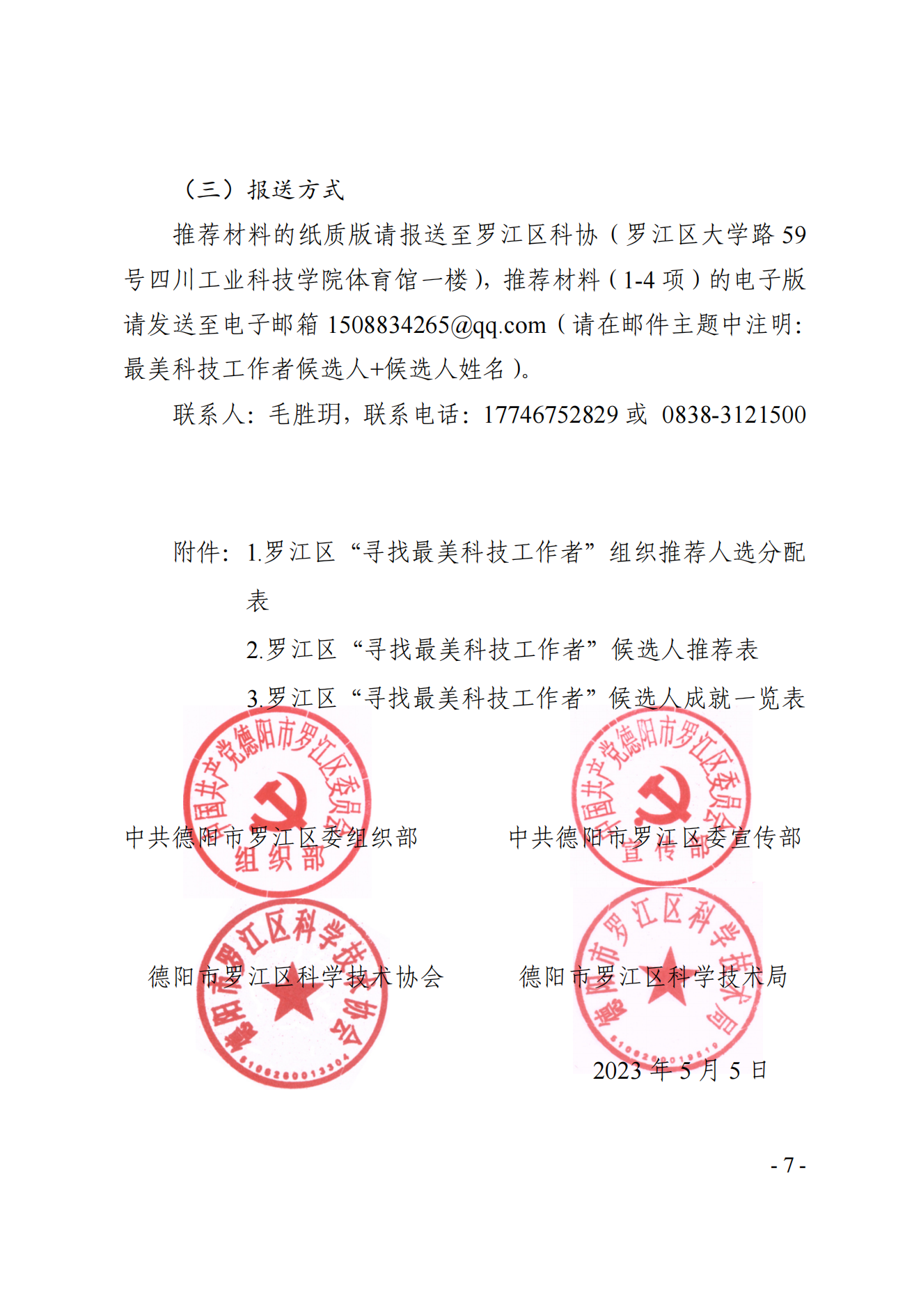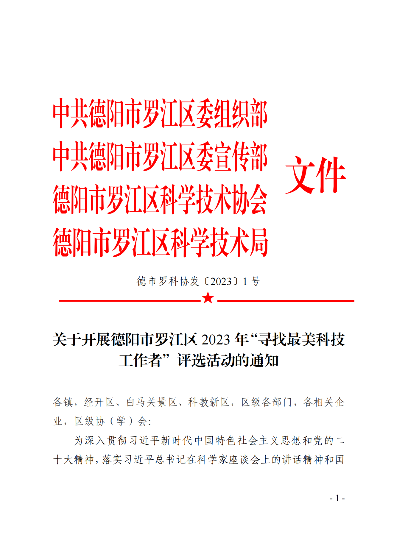 德市罗科协发〔2023〕1号 关于开展德阳市罗江区2023年“寻找最美科技工作者”评选活动的通知