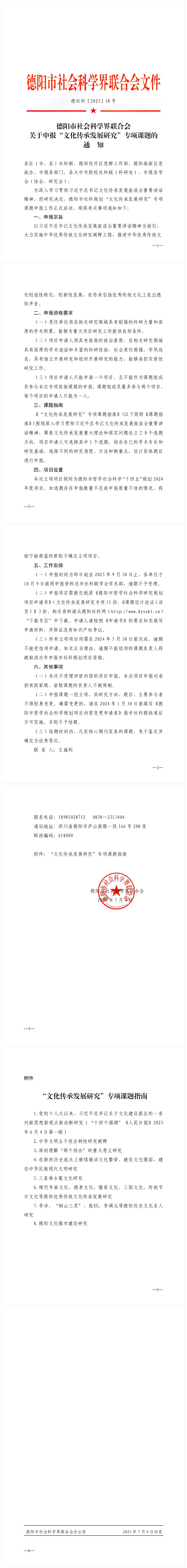 德阳市社会科学界联合会关于申报“文化传承发展研究”专项课题的通知
