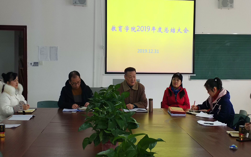 20191231日,教育学院在学前教育实训楼召开了2019年度总结大会。学院院长吴节义、支部书记熊定永、副院长孙红英及全体教职工参加会议。