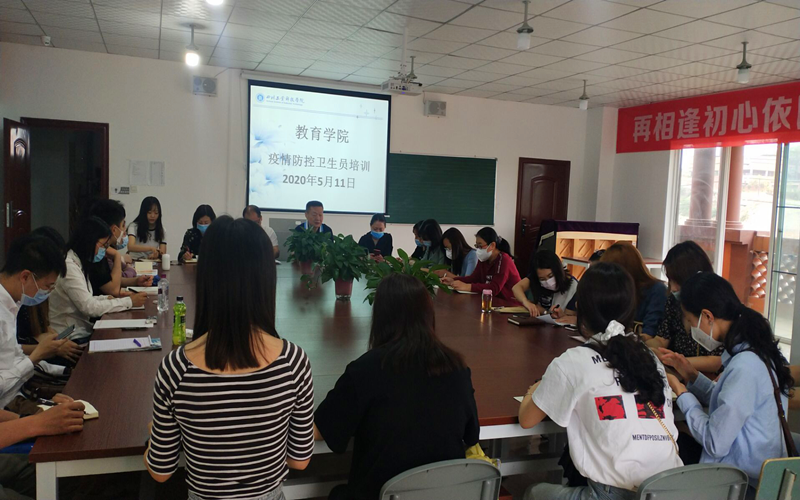 511日,教育学院在学前实训中心组织开展疫情防控培训会,学院院长吴节义、党总支书记熊定永、副院长孙红英以及学院全体教师、专兼职辅导员参加培训。学校疫情防控督查组成员刘凤玲、刘露受邀到会督查指导。