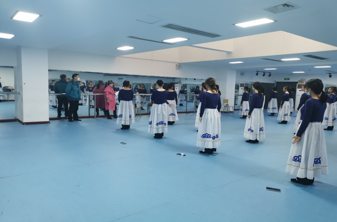 老师因疫情居家隔离,不能到教室教学,针对此种情况,我们采取的是学生到教室上课,老师通过线上直播的形式教学。这些课程中,舞蹈课有其自身的特殊性,需教师大量示范动作,因此教师通过腾讯会议教学,一方面便于学生学习,另一方面便于教师掌握学生学习情况,及时纠正和整改。