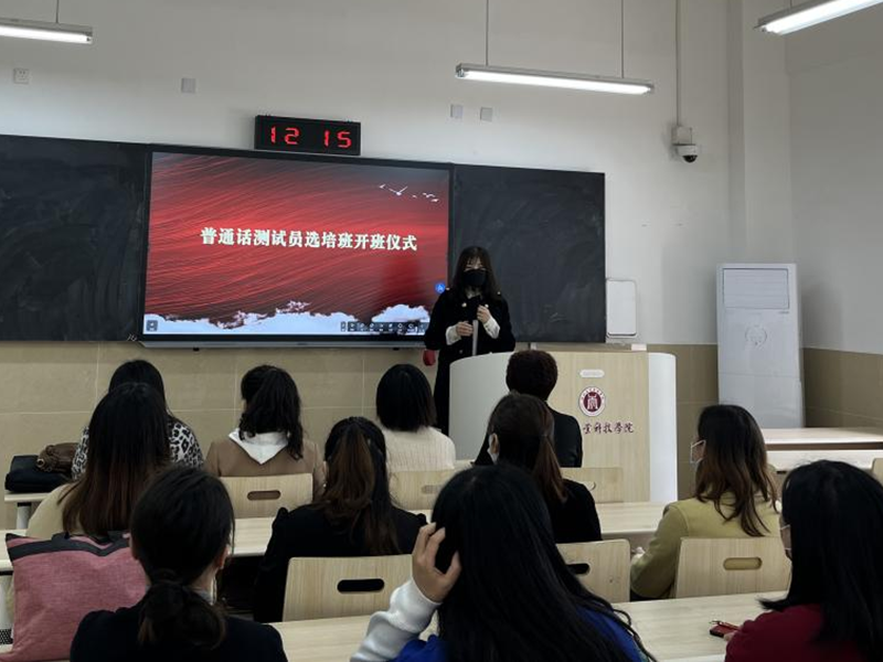 为贯彻落实《国家中长期语言文字事业改革和发展规划纲要》和《中华经典诵读工程实施方案》要求,建设四川工业科技学院语言文字推广基地,学校决定进行普通话水平测试员的培养,3月9日,语委办副主任、选培班负责人刘琴主持开展了普通话测试员选培班开班仪式,全校共二十五名语音面貌好、服务意识强、教学水平高的教师参加了会议。