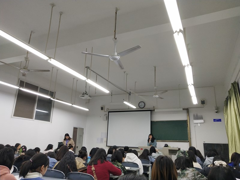 班会上心理委员总结了上周参与大学生心理问题会议的自身感受。在讲PPT内容时边询问大家最近是否有失眠,甚至是否有失眠一周的情况。少部分同学表示自己确有失眠的情况。对于这个结果,心理委员也耐心与大家分享自己的经历和自身的感受。最后她告诉同学们如若觉得自己心里有障碍的可以找班委、辅导员或者学校的心理咨询室的老师进行倾诉,解决自己心里的一些烦恼。