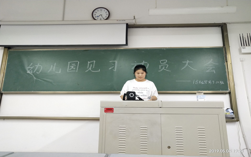5月4日,教育学院学前九班在钟灵103开展班会活动。参与本次班会活动的有辅导员陈鹏羽、王迪一老师以及学前教育九班十班全体同学。
