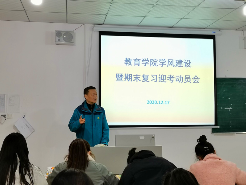 为加强学生思想道德素质,持续推进学风建设,做好期末复习迎考,教育学院分别于2020年12月17日、18日在罗江校区本部学前实训中心奥尔夫教室和东区303教室召开了学风建设暨期末复习迎考动员会。