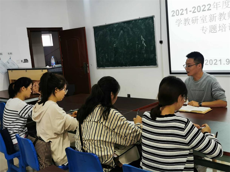 首先由教研室主任颜富云从常规教学资料的准备、上课期间常见问题讲解、学科教学要点、教师老带新等十个方面讲解了新教师如何尽快适应新的工作岗位,提高自身的教学技能和专业教学水平。