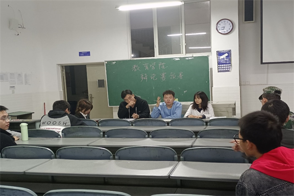 为丰富大学生的课余活动,培养同学们的思辩能力和语言表达能力。2021年10月19日晚在毓秀205B教室举行了教育学院辩论赛预赛。