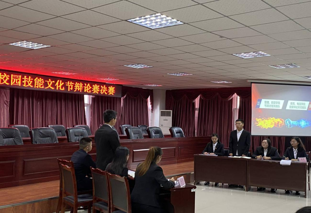 为了进一步提高同学们的辩论能力,发散同学们的思维,11月23日下午,第十四届校园技能文化节辩论赛决赛在图书馆408举行。本次比赛的评委老师分别是团委书记、学工部副部长曾晓莉,管理、航空学院陈财老师,电信学院团总支书记王波,团委老师习玲。进入决赛的两支队伍分别是来自管理、航空学院的丐帮讨饭先锋队和来自电信、教育学院的皇家辩论天花板队。