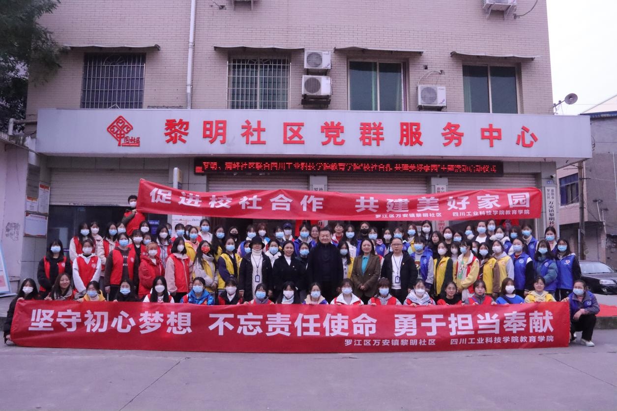 为深入贯彻十九届六中全会精神,切实做到全心全意为人民服务。12月3日下午,四川工业科技学院教育学院联合罗江区黎明、麓峰社区开展“校社合作 共建美好家园”主题活动。下午14:00,活动启动暨授牌仪式在黎明社区党群服务中心浓重举行。教育学院院长吴节义、党总支书记熊定永、副院长孙红英、学工办主任黄译漫以及第32期党校全体学员、近期预备党员发展对象、黎明与麓峰社区三委、新时代文明实践站志愿者参加了启动暨授牌仪式。
