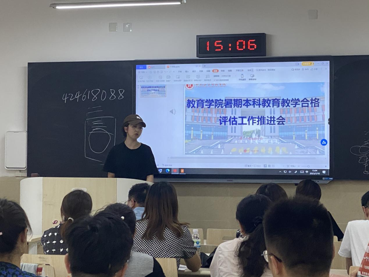 7月10日下午,教育学院在龑江学村B511教室召开暑期本科教育教学合格评估工作推进会,会议由教育学院党总支书记、院长何忠国同志主持,承担暑期本科教育教学合格评估工作的教师参与了本次会议。