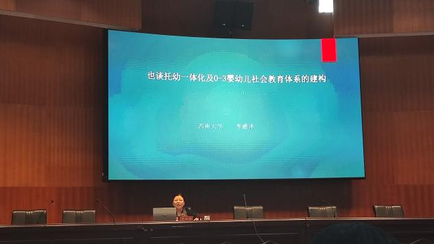 会议上,针对“学前教育一体化”,西南大学教育学部教授博士生导师李姗泽首先加深了大家对“一体化”的理解,她认为“托幼一体化”应受到社会各界人士的重视。其次,李教授从学前教育专业的发展历史角度分析,0~3岁婴幼儿教育本身就是作为学前教育的一部分,我们应重拾早期教育。最后,李教授提出未来人的教育发展方向应是“家、园、校、社一体化”,这也是新时代、教育现代化的价值指向,中国教育的未来面貌。