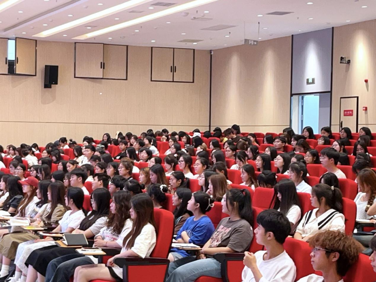 为强化同学们的见习效果,让大家更好的吸收见习中的课程经验和教学技巧,广泛应用于实践之中。教育学院于5月26日晚在c区报告厅开展认识实习主题讲座。本次讲座由教育与艺术教学实习实训中心副主任黄译漫主持,德阳市东电外国语实验小学副校长曹桂彬主讲,23级小学教育专业学生有序参加。