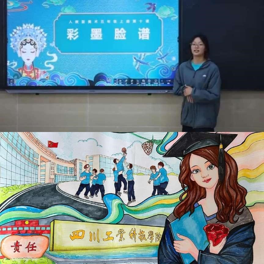 三是手工作品,有利用身边废弃物进行设计的环保作品,有对大自然的材料的运用,有对国风元素的描绘加工,都体现了同学们的独特巧思;四是微课讲解,同学们通过自己讲解关于美的课题,分享与传递对于美的感受,也充分展示了各自的学习能力与个人风格特色,对于美的讲解独到深入。