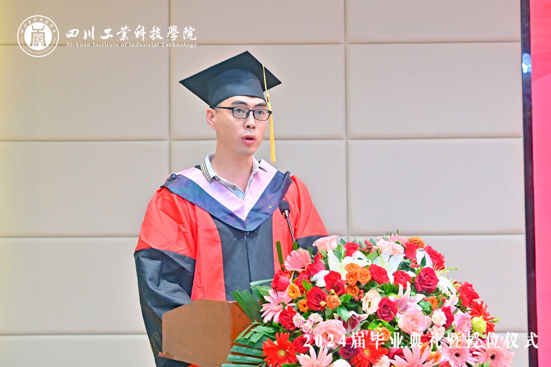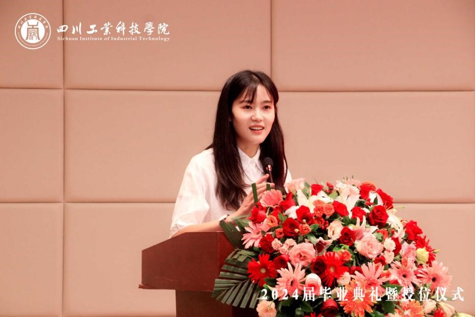 会议第七项,优秀毕业生代表谭境贤发言。她谈到:“毕业也意味着我们学生时代的终结,但并不意味着学习生涯的结束,未来我们要在生活中学习,在学习中生活。让时间作证,我们2024届全体毕业生,一定会牢记“明德、博学、笃行、创新”的校训,做尚德之人、有德之人、施德之人,做学识渊博之人,做不懈追求和捍卫客观真理之人,做敢于担当、敢为人先、勇于创新之人。”