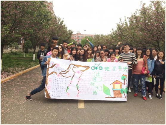 2016年4月7日下午3:50,四川工业科技学院思想政治课教学部的江晓燕老师带领着财经学院会计电算化三班的学生开展了关于《走进春天,低碳生活》的实践活动,让同学们感受春天的气息,欣赏校园里春天的美景。本次实践活动的是2015级会计电算化三班的全体同学。江老师带领着大家来到了校园里的樱花大道。春天到,花枝俏,这里每天都吸引很多同学前来拍照,拍下校园里一年一季的美丽景色。 校园里处处都是浅浅的绿色,学校的小河里的鱼儿仿佛也因为春天的到来在河里欢快的游着。同学们有说有笑地来到了操场上,坐在一片绿色的草坪里快乐地谈着对春天的美好感受,以及自己将如何在实践中过低碳生活。