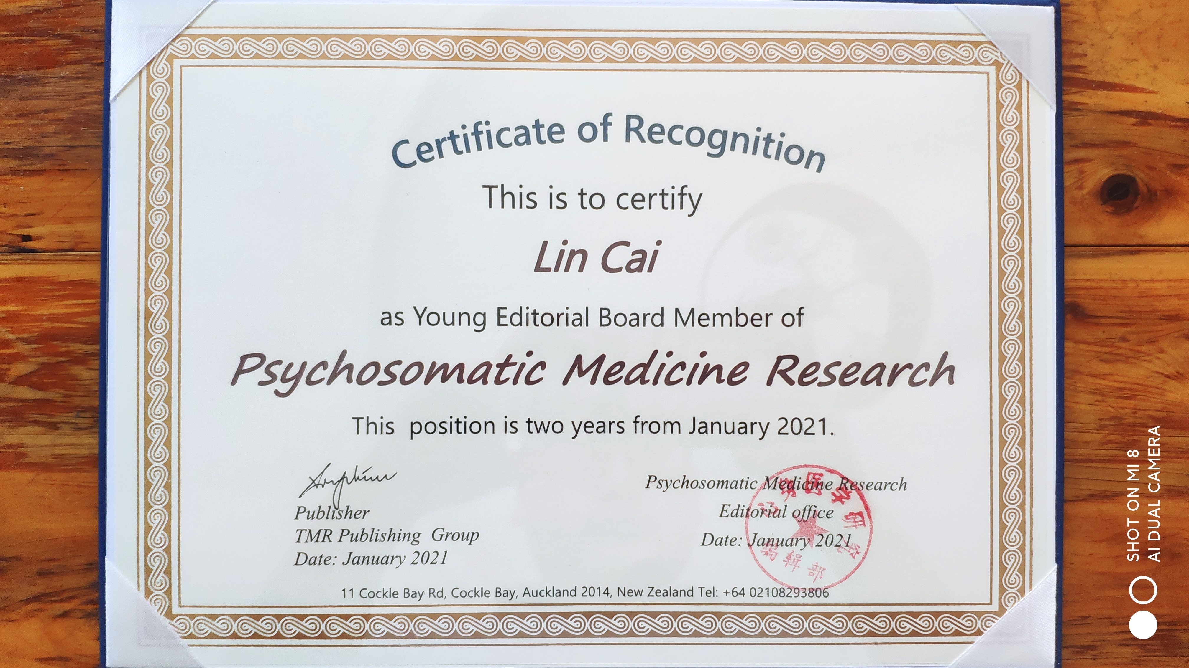 图1 《Psychosomatic Medicine Research》青年编委聘书