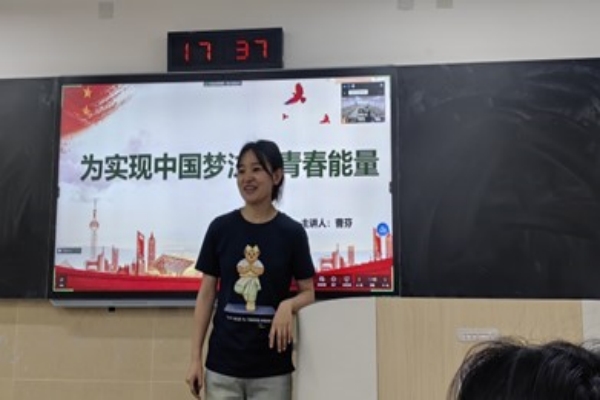 根据活动安排,首先由曹芬老师进行教学展示。曹老师以“为实现中国梦贡献青春能量”为主题,结合周恩来“为中华之崛起而读书”的宏伟志向,以及“两弹”元勋邓稼先胸怀祖国、服务人民的爱国精神,从何为梦想、为什么要有梦想以及应该有什么样的梦想三个层面展开,主题明确、准备充分,老师们深受启发。