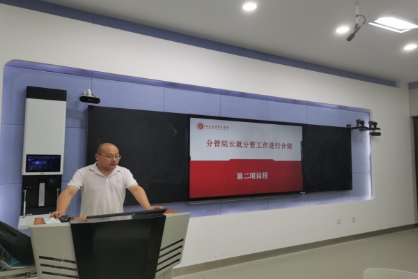 谭军副院长介绍学院的分管工作,分享了自己在高校工作的成长经历和体会,为新教师们今后的职业发展提供了经验。并对新教师们提出了四点要求:一、立德树人,思政老师要坚定马克思主义的信仰理念,做到“在马言马,在马信马,在马用马”,引导青年补足“精神之钙”。二、增强自身素质,不断提高理论水平,站稳讲台,落实为党育人,为党育才。三、树立师德形象,教师的操守是以身立教、为人师表。希望各位新老师能以昂扬向上、积极进取的精神状态对待同事、对待同学,保持教师风范形象。四、注重科研工作,积极申报学校下发的课题项目,积极响应我院开展的科研活动。