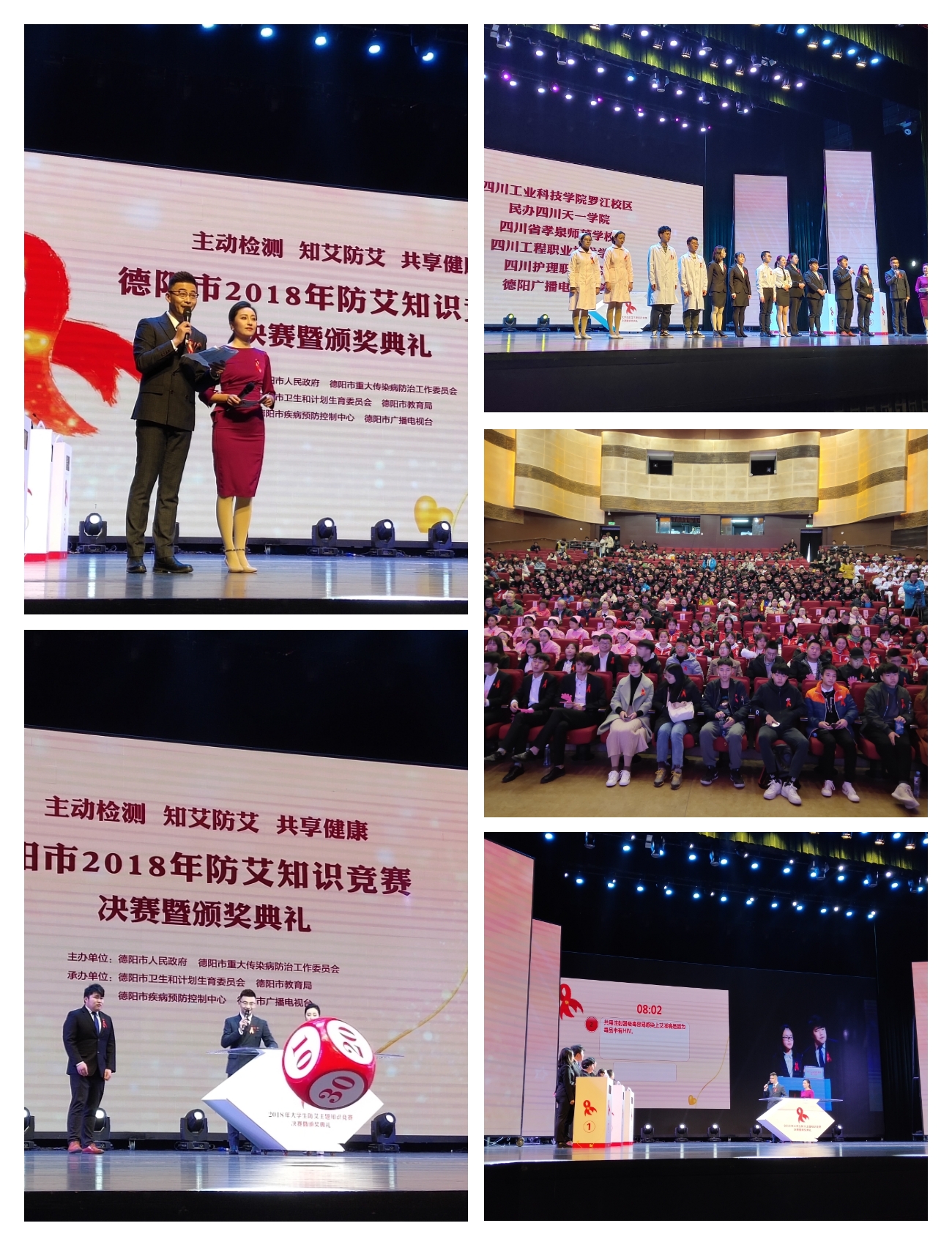 12月5日下午,由思政部李海伟老师带队的两名学生前往德阳市广播电视台演艺中心参加了德阳市2018年大学生防艾知识竞赛决赛暨颁奖典礼,建工学院党支部副书记杨春、思政部老师刘佳欣以及20 余名学生前往现场为他们加油助阵。