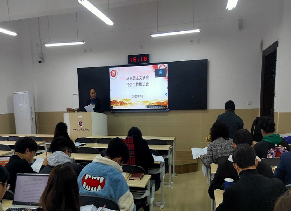 2023年3月2日下午,四川工业科技学院马克思主义学院全体专兼职教师在C411教室举办了新一轮评估工作推进会。本次评估工作推进会与会人员为马克思主义学院全体领导班子成员以及相关工作专兼职教师,其中部分教师于绵竹校区参加线上会议。本次会议主要由马克思主义学院副院长蔡林副教授主持重要工作,本次会议共有以下方面内容: